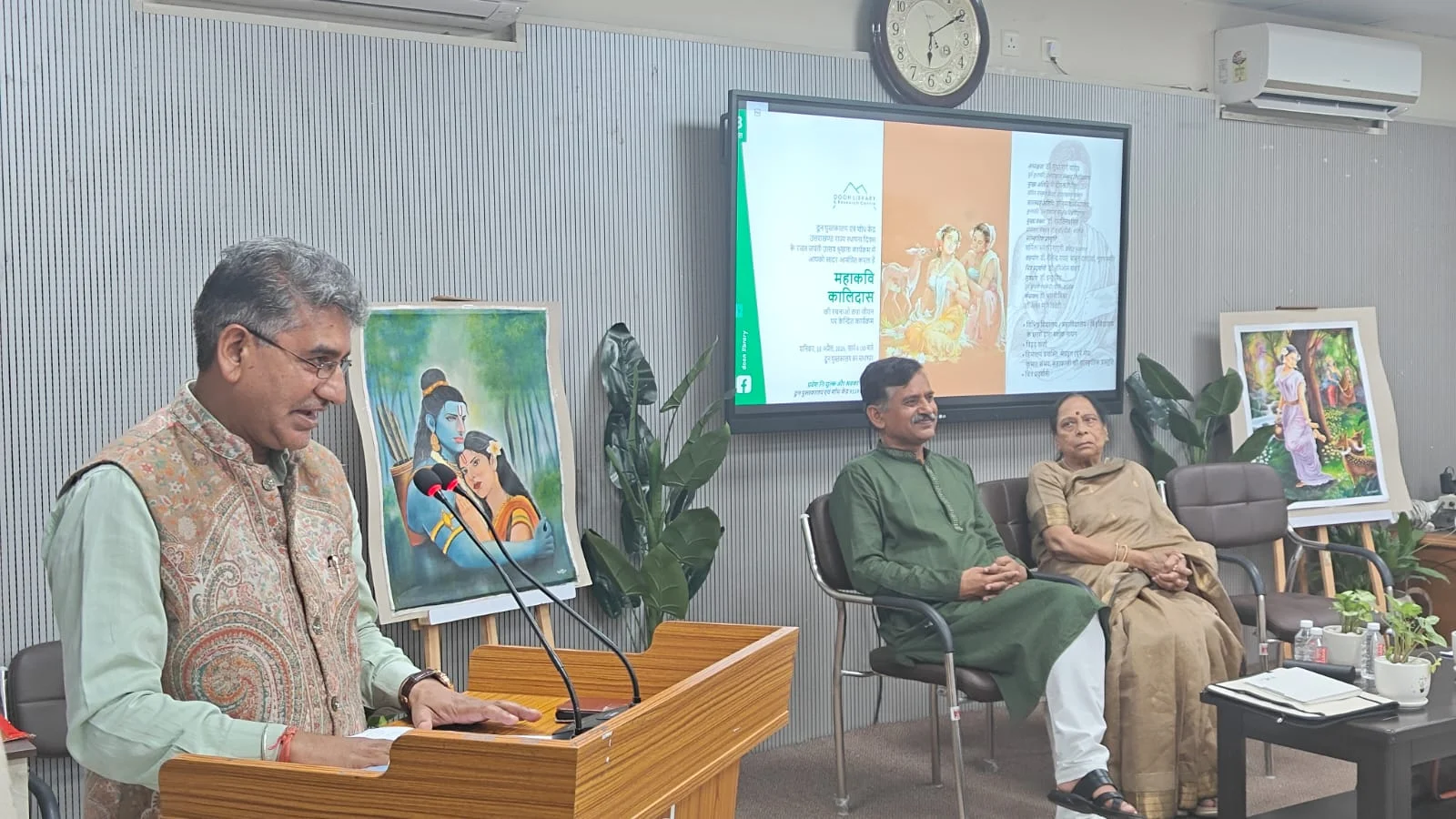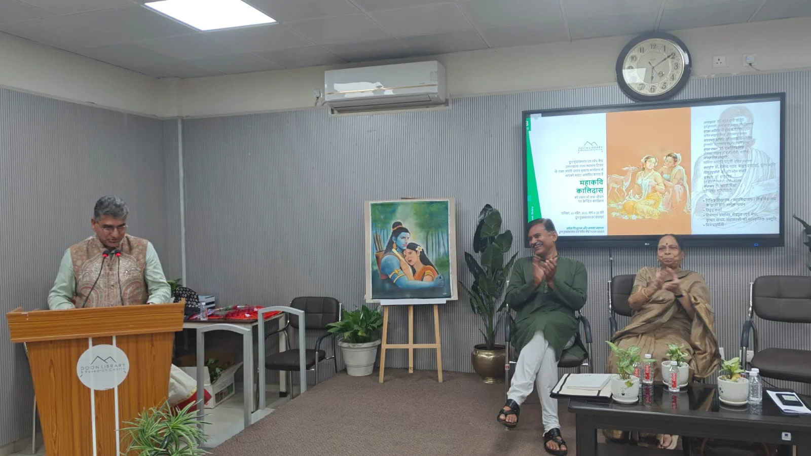देहरादून : दून पुस्तकालय एवं शोध केंद्र की ओर से आज सायं महाकवि कालिदास पर केंद्रित एक महत्वपूर्ण कार्यक्रम आयोजित किया गया । केन्द्र के समागार में आयोजित इस कार्यक्रम में कालिदास की रचनाओं तथा उनके जीवन पर आधारित वार्ता तथा सांस्कृतिक प्रस्तुतियों का भव्य आयोजन किया गया ।